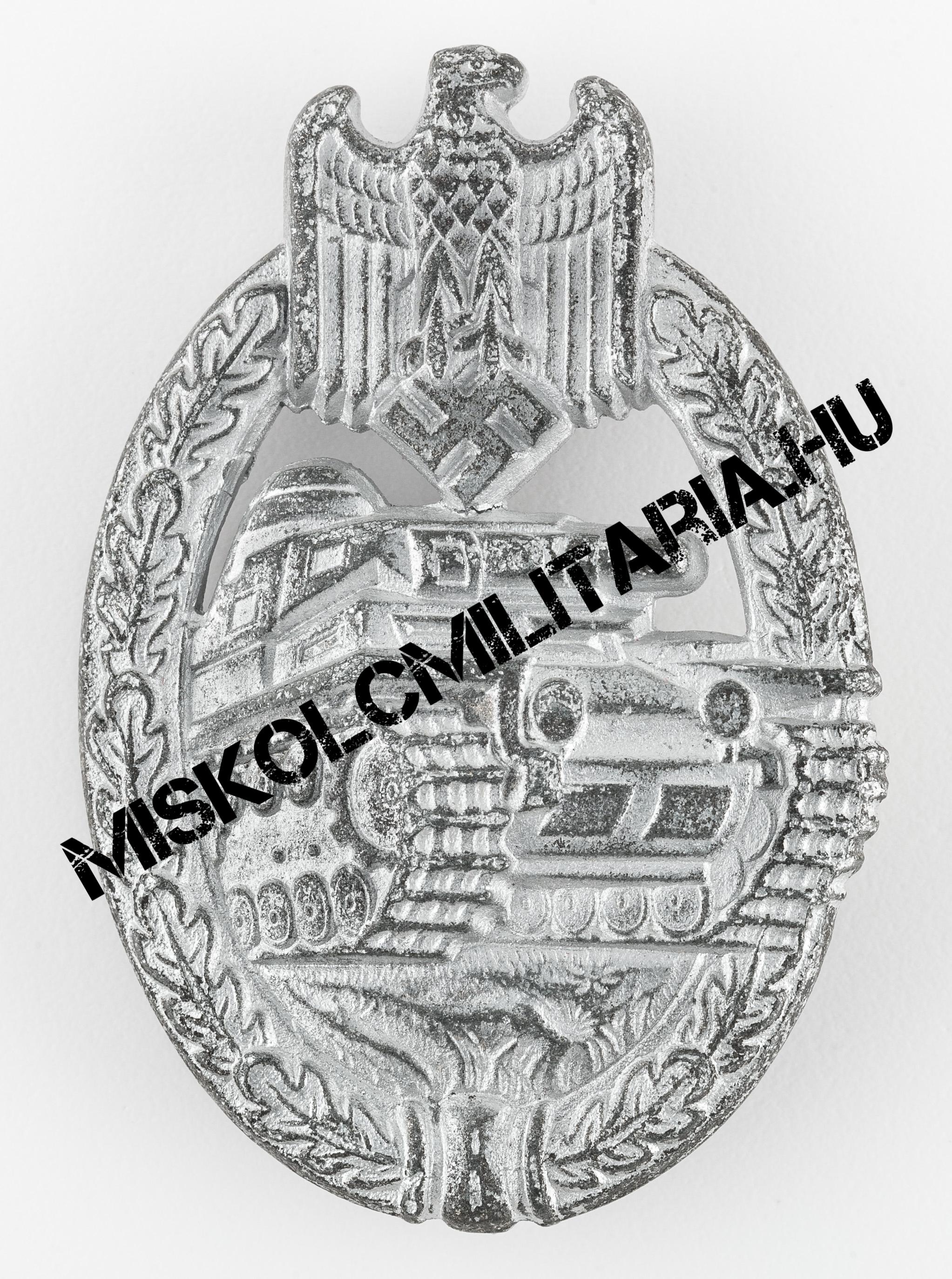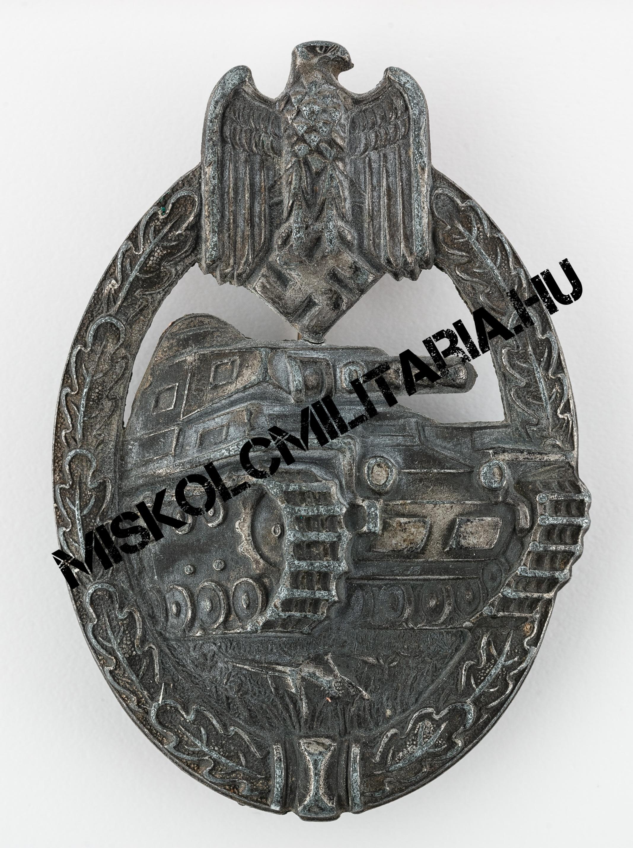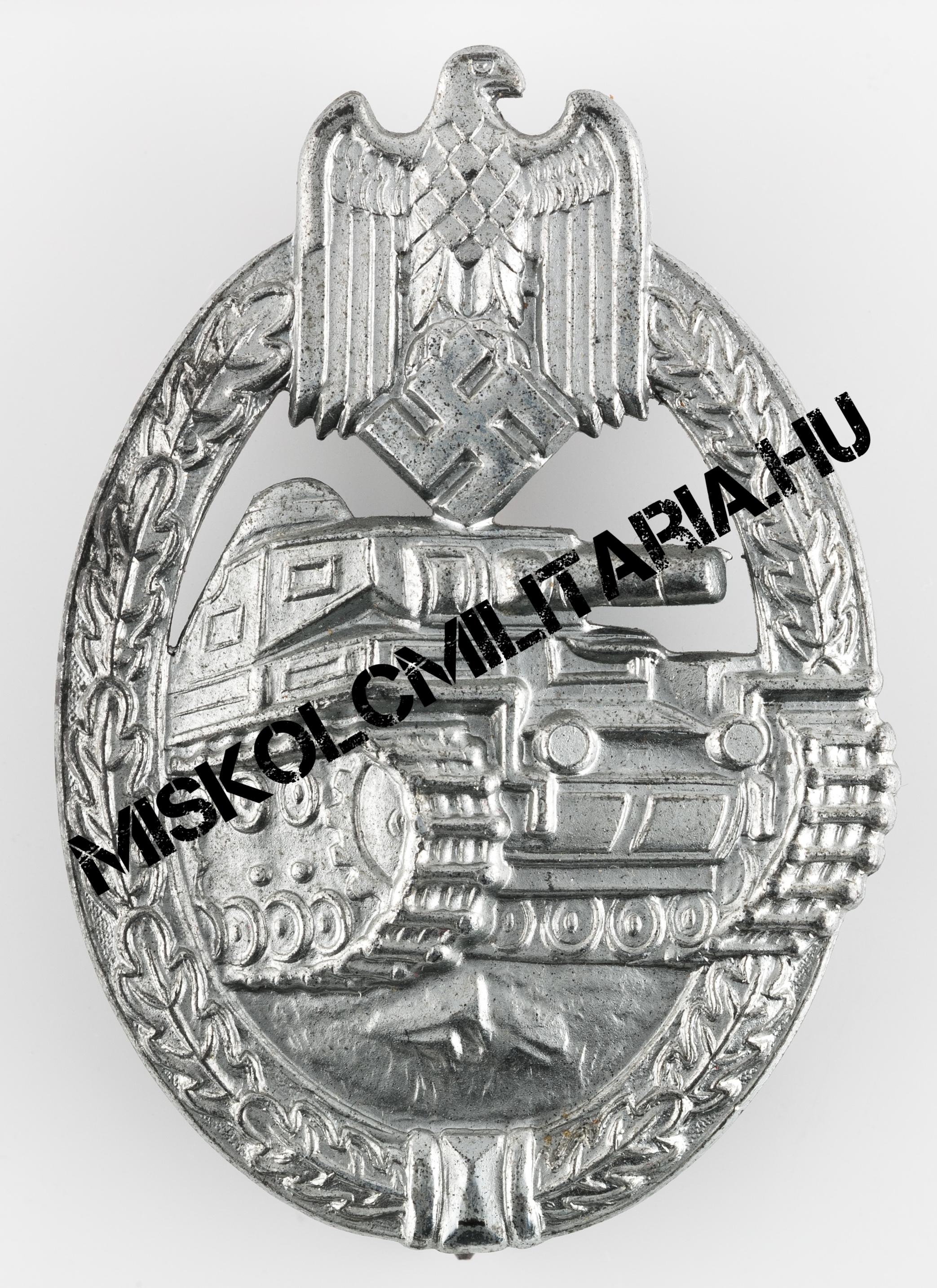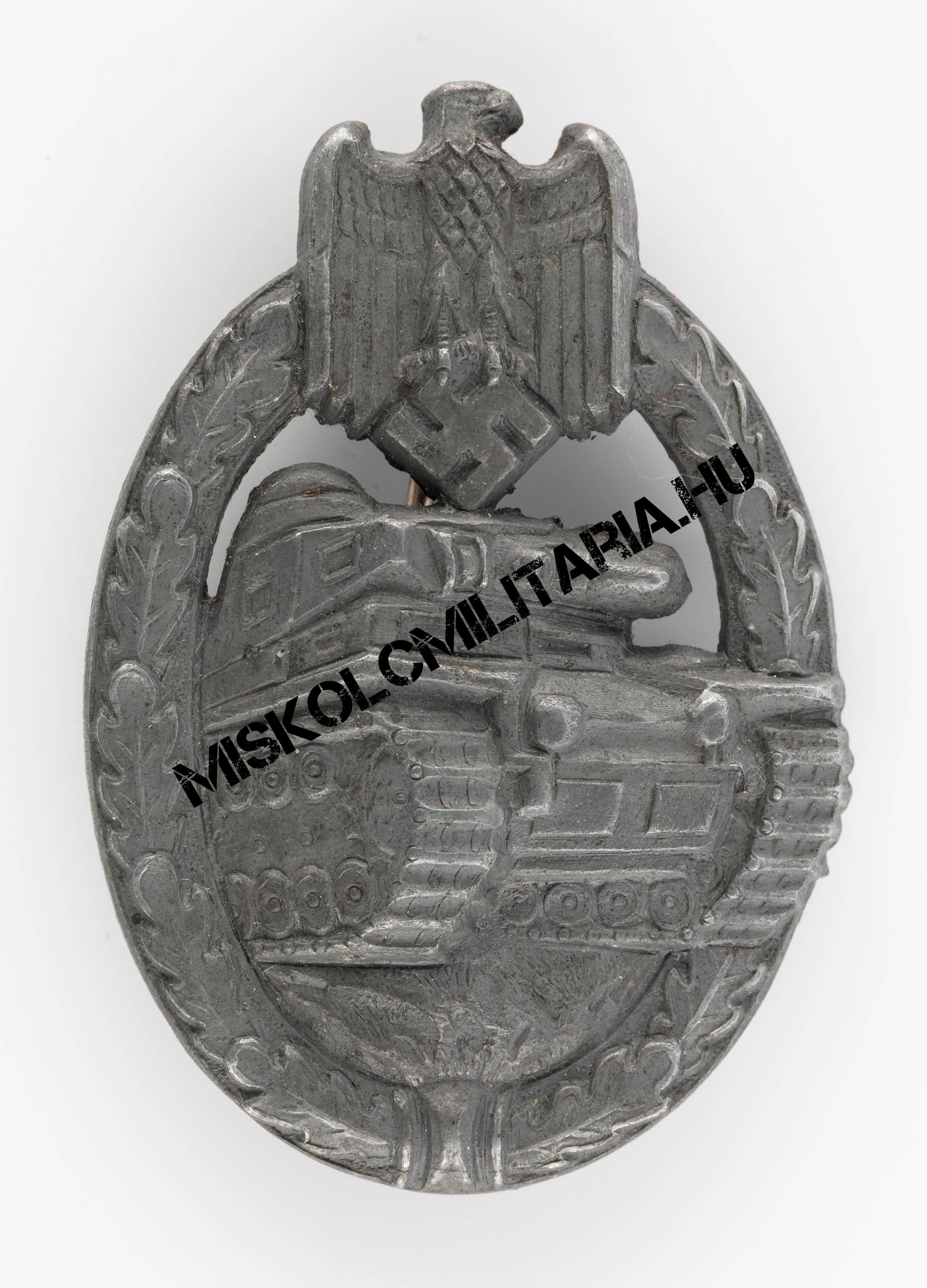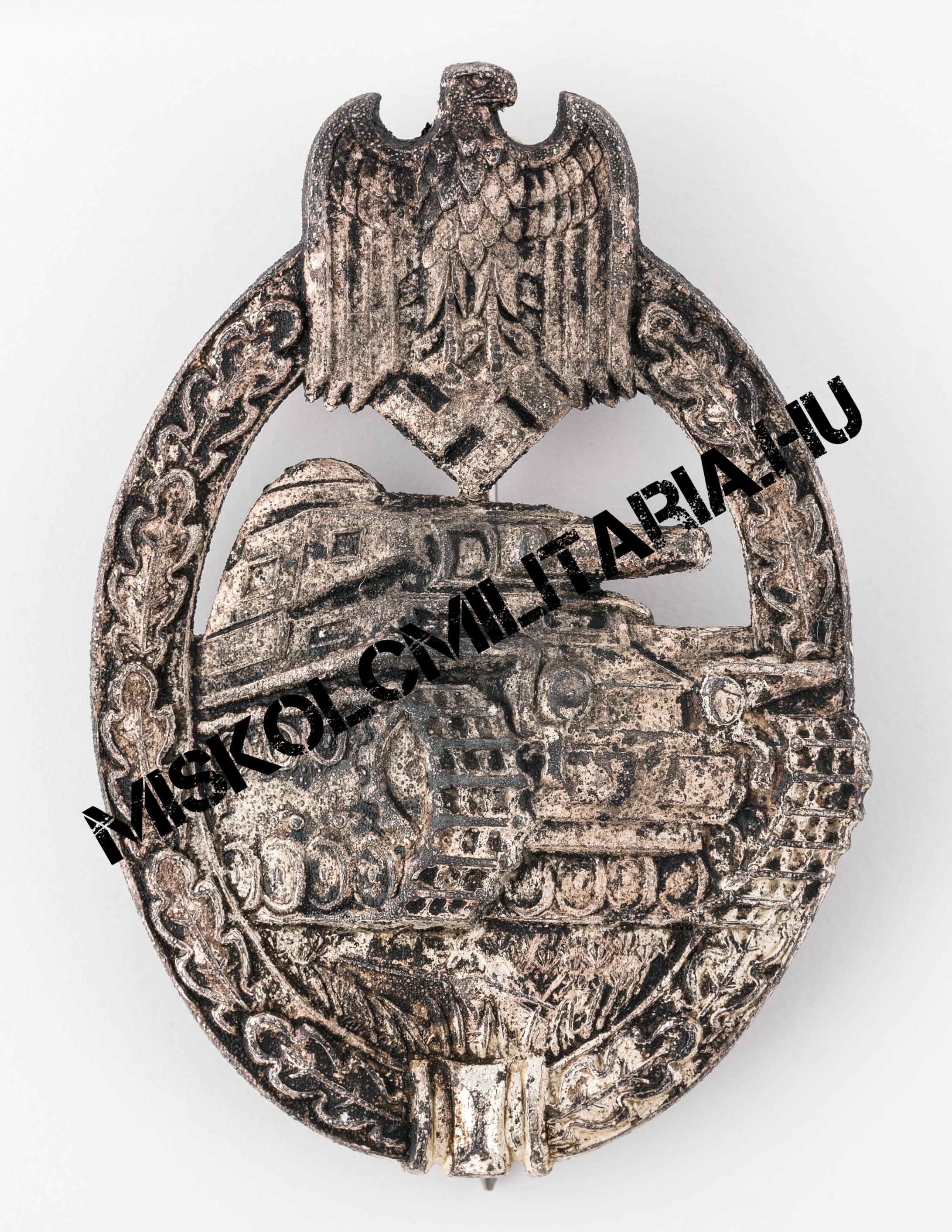 A sorban a harmadik hasonló kivitelű példány, amely igaz nem jelölt, de nem is átlagos, kettő szempontból sem. A Wegerhoff termékek különösen keresettek gyűjtői körökben, mindemelett ritkának is számítanak. Nem kivétel ez alól jelen példány sem, amely hasonló időszakban készült, mint előző két társa. Hátoldali kampóját tekintve egészen sajátos. Csak erre a gyártóra jellemző, L alakban meghajlított lemez kampó helyezkedik el rajta, amelynek felső, kiálló része letört, feltehetően viselés közben. Ezen gyártó cink ötvözet lapból készült jelvényeinek szerelékváltozatait tekintve is, azok B típusába sorolható. A sas fejénél bal oldalon némi sorja figyelhető meg és felületkezelése sem egyenletes, inkább érdes, néhol apró buborékok láthatók. Régi rossz berögződés szerint ez a buborékosság a felületen a forró anyagra felvitt felületkezelést felnyomó kiáramló gázok miatt keletkezik, de aligha valószínű, hogy olyan forró fémet igyekeztek volna galván eljárással meríteni, amelyet előzetesen nem zsírtalanítottak, készítettek elő. Ez utóbbit nyugodtan el is felejthetjük és inkább a megnövelt termelés minőségre gyakorolt negatív hatásait láthatjuk benne, a kiáramló gázok történetét, pedig nyugodtan tekinthetjük afféle városi legendának.