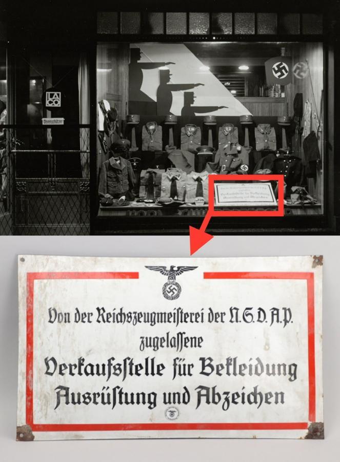 3. Kép - Bolt kirakata, amelyben SA tagok számára gyártott kiegészítők és egyeneruhák láthatóak